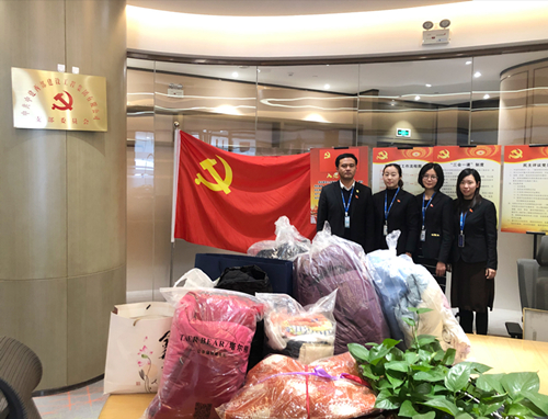 在公司党支部号召下,此次活动得到所有员工的大力支持,一大早,纷纷带着大包小包的衣服来到党员爱心捐赠处。