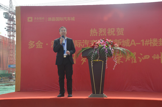 多金集团副总裁、多金泗县国际汽车文旅新城项目总经理余安云、开云官方网页版副总经理周璜及各位领导参加了封顶仪式。