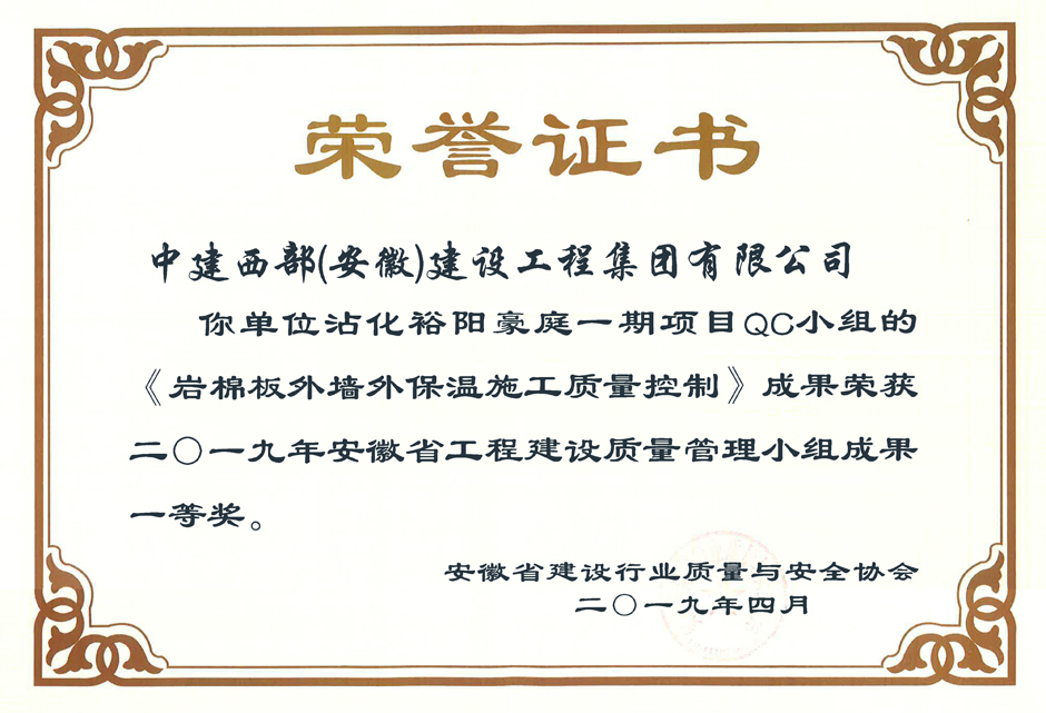 QC小组《岩棉板外墙外保温施工质量控制》省级一等奖