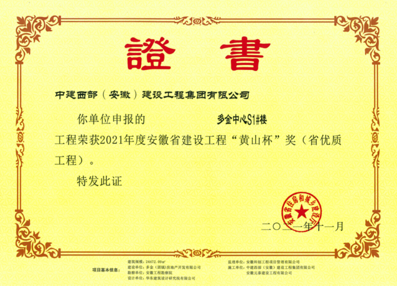 近日,由安徽省住房和城乡建设厅传来喜讯,由开云官方网页版承建的,固镇多金中心S1#楼获得安徽省建设工程黄山杯奖。