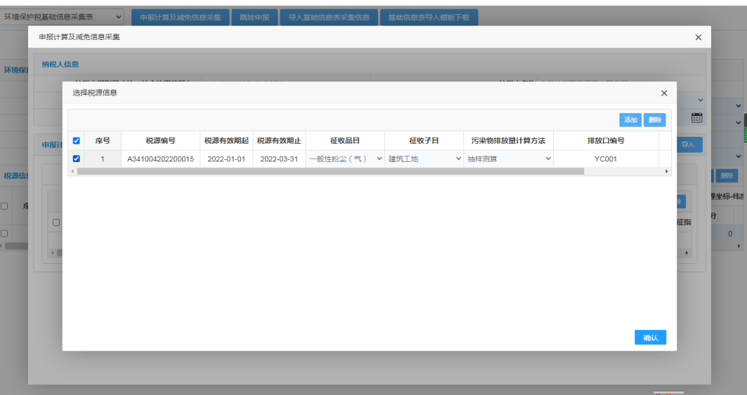 选中采集的税源信息,点击确认。