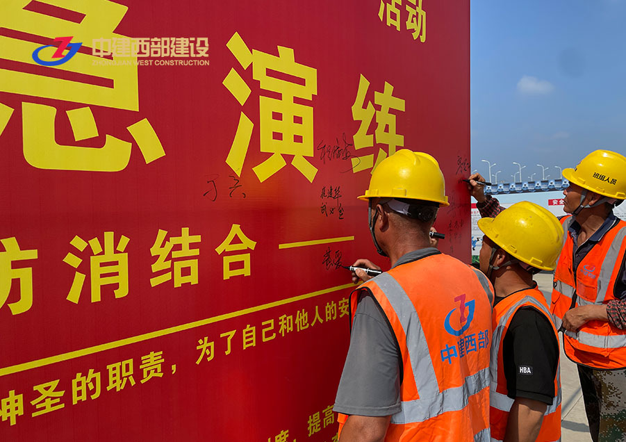 为进一步提高全员自防自救能力,增强消防安全意识。6月27日开云官方网页版在肥东多金城项目部举行了消防应急演练活动,并带领全体建筑工人进行安全宣誓。用一句句铿锵有力的誓词,表达对安全生产的信心,在安全展板上郑重签下自己的名字,表达对安全生产的决心。