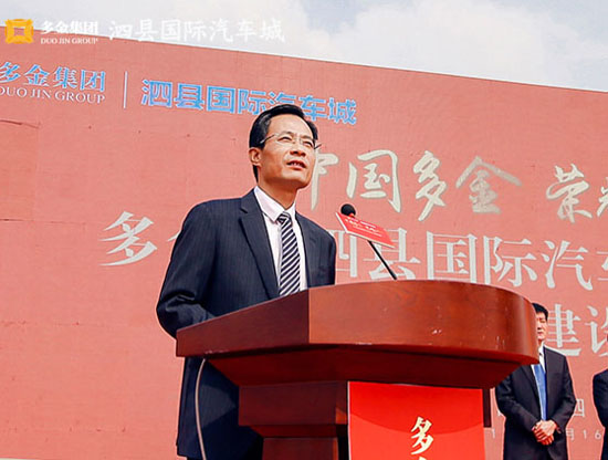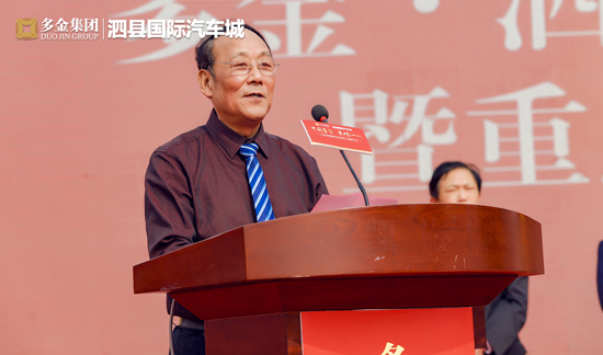 安徽汽车经销商商会党支部书记李新广先生作为特邀嘉宾上台致辞,表示汽车行业是一个持续蓬勃发展的产业,“多金·泗县国际汽车城”以前瞻的战略眼光,顺应行业发展趋势打造“一站式”汽车产业新平台,希望以此能够带动区域汽车行业发展。